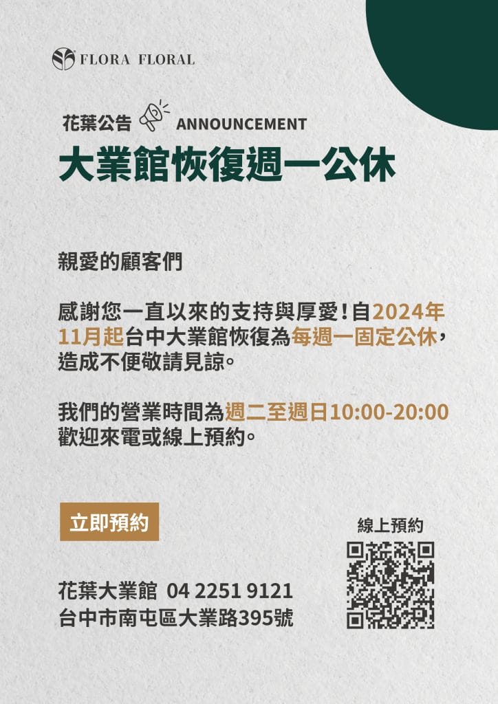#台中大業館 恢復為每週一固定公休
