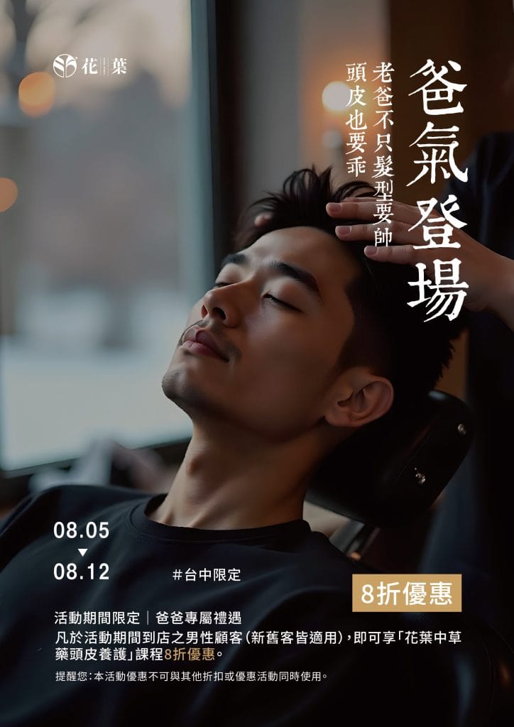 #爸氣登場 #父親節優惠 #花葉中草藥養護 #台中館限定 #頭皮保養 #放鬆一下