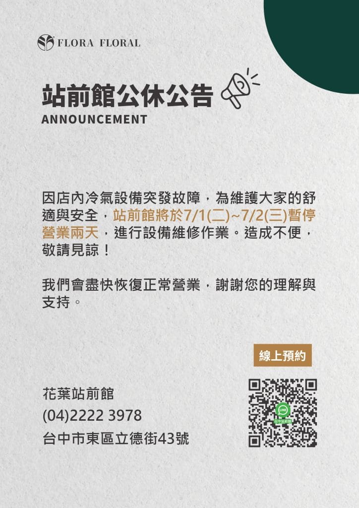 #站前館 將於7/1(二)~7/2(三)暫停營業兩天
